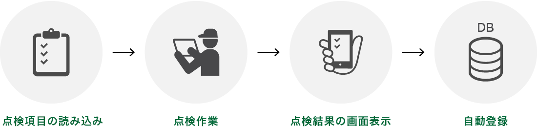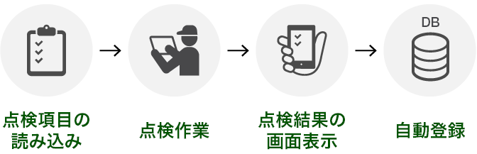 タブレットなどで点検内容の結果入力を行い、データベースに自動登録